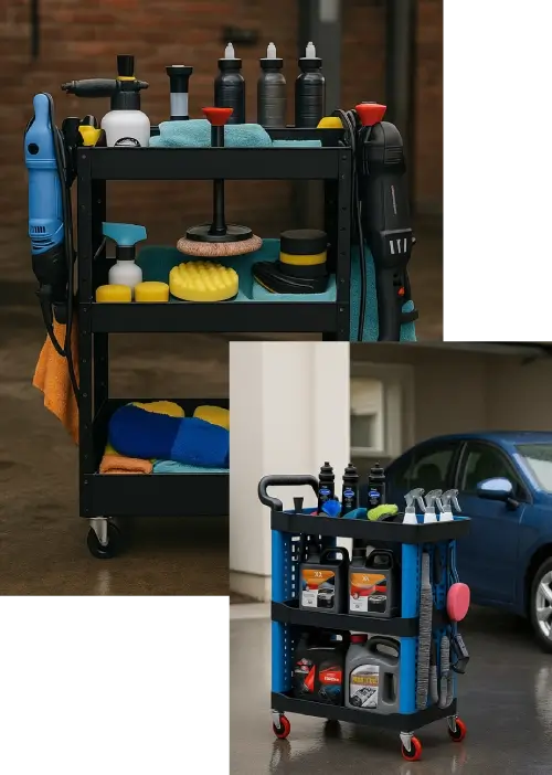 Still dragging buckets, bottles, and brushes around by hand? Our manual car wash trolleys keep all car washing tools in one sturdy mobile unit, so you work faster, cleaner, and without backache.